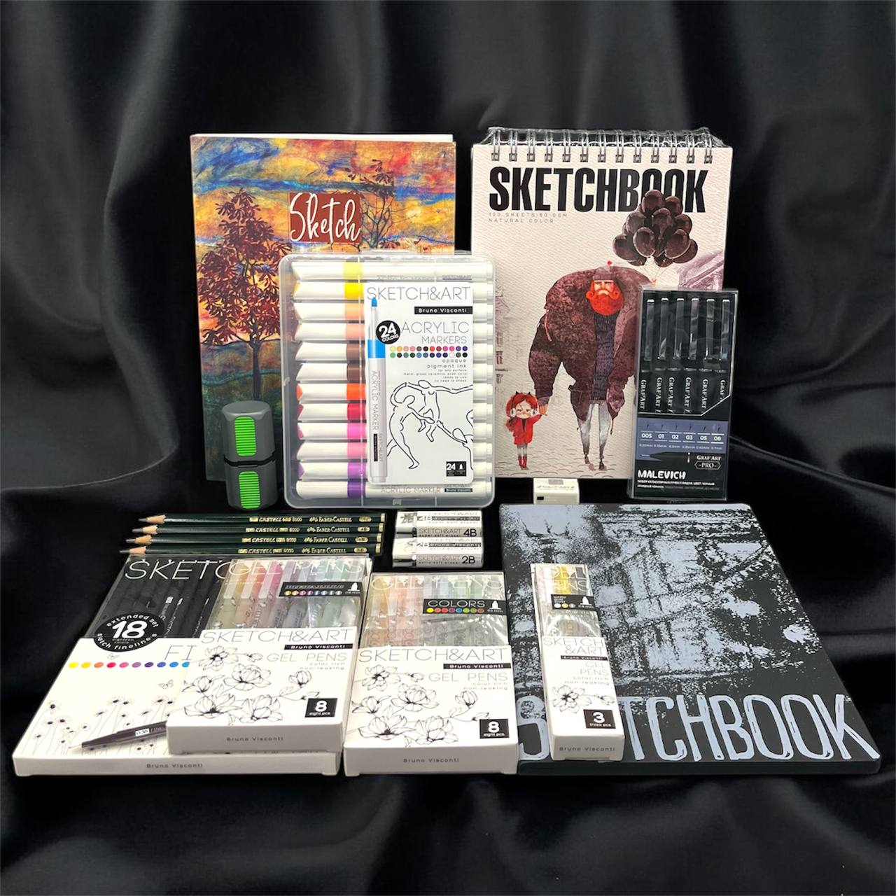 Представляем вам набор SKETCH&ART-03 — не просто коллекцию инструментов, а полноценную творческую лабораторию в подарочной коробке.Это идеальный выбор для художника, который не любит ограничений и хочет экспериментировать с любыми техниками: от классической графики до ярких современных иллюстраций. Здесь собрано всё для воплощения самых смелых идей — от первой линии до готового шедевра.