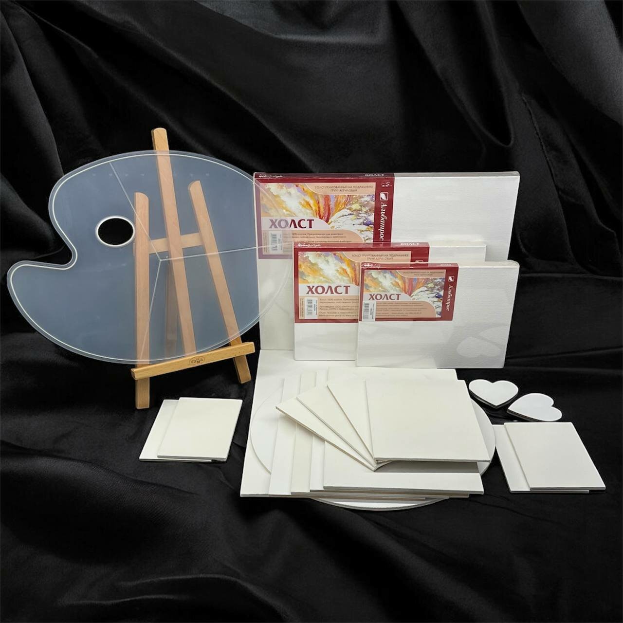 - Готовые поверхности для шедевров: От небольших холстов-магнитов до большого формата 30х40 см на подрамнике. Классические прямоугольные, круглые, грунтованные основы — творите в любом формате.