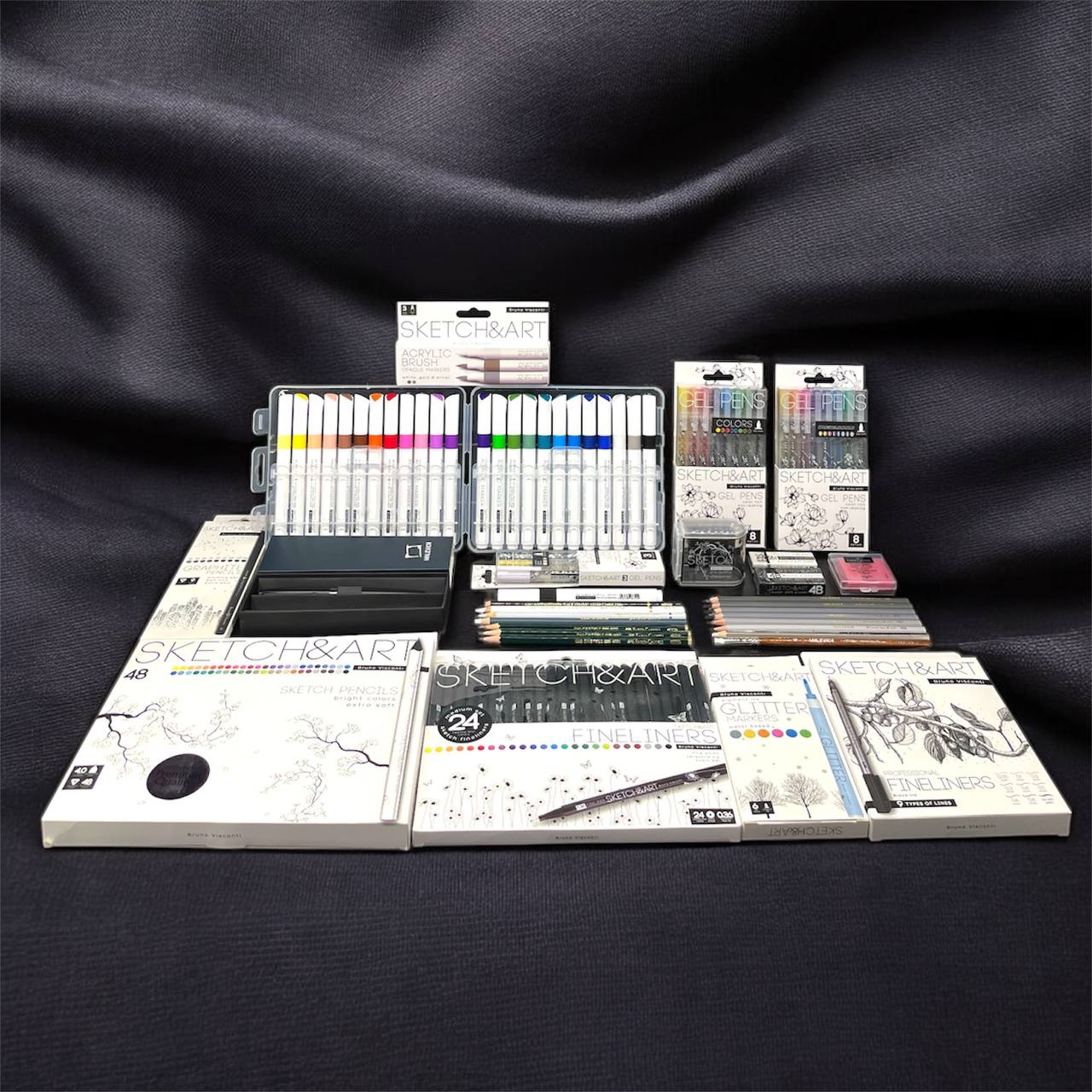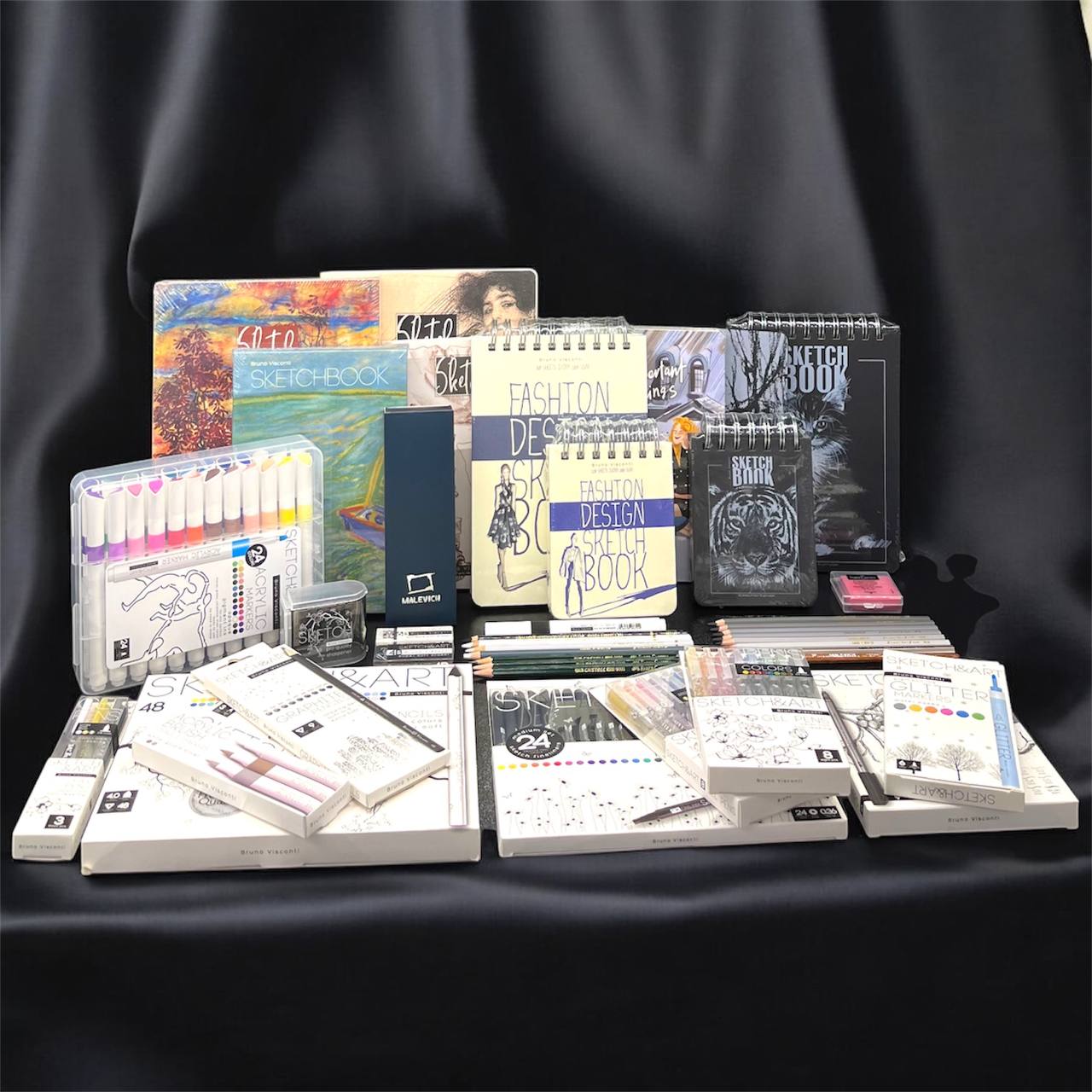 ✔️ Гармония классики и инноваций: от винтажного угля до сияющих гелевых ручек.