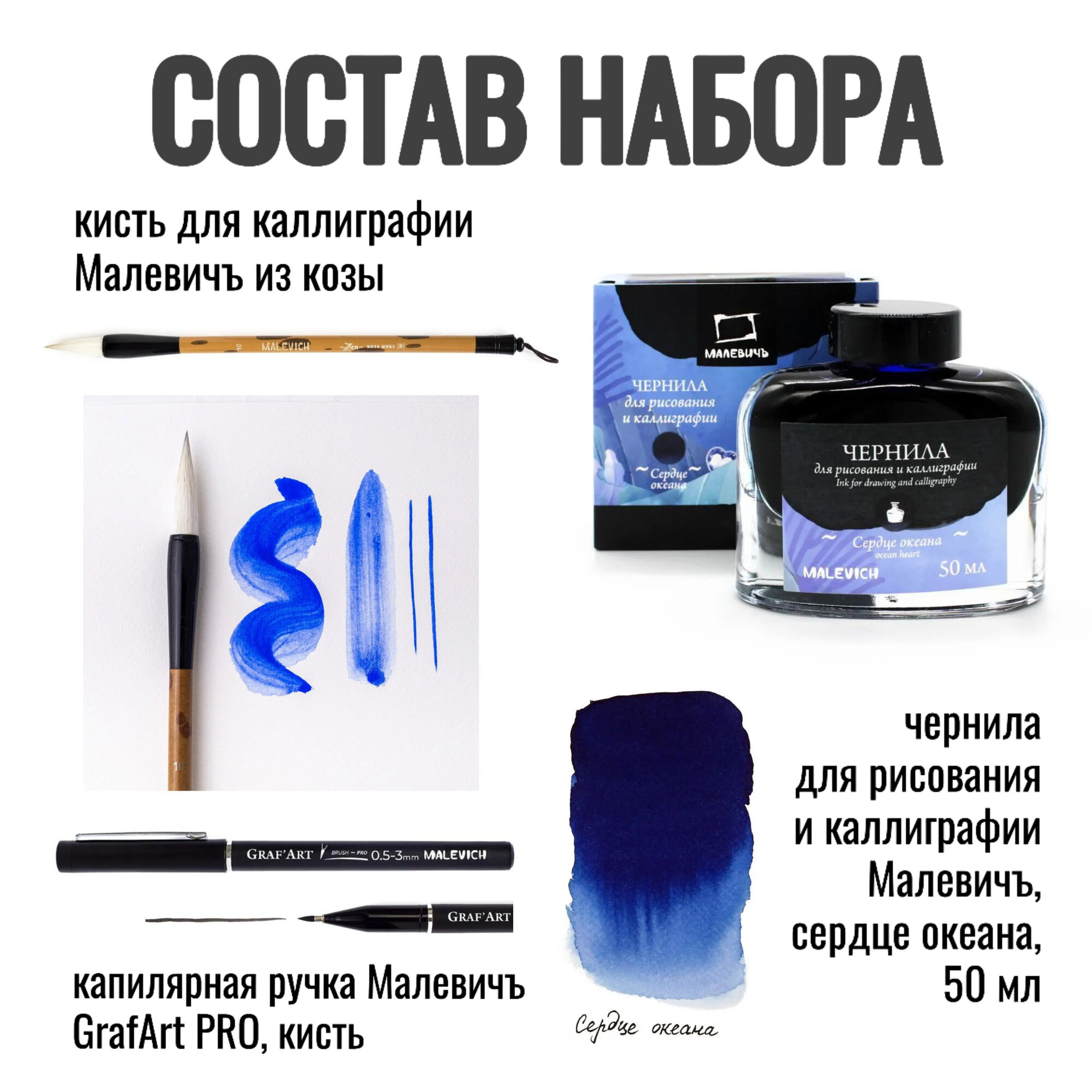 Премиум-качество: Все материалы — от чернил до бумаги — от проверенного бренда «Малевичъ», который ценят художники по всей России.