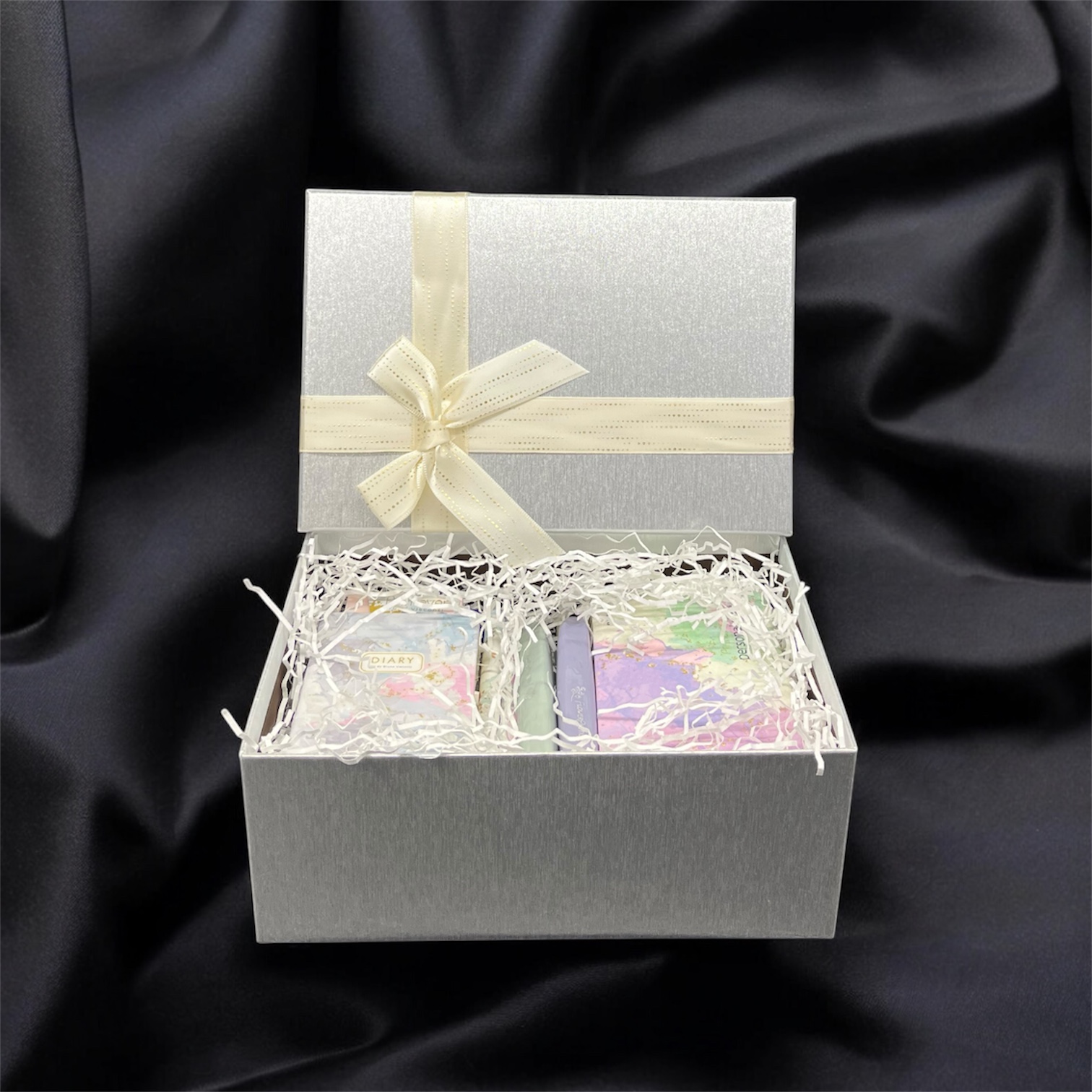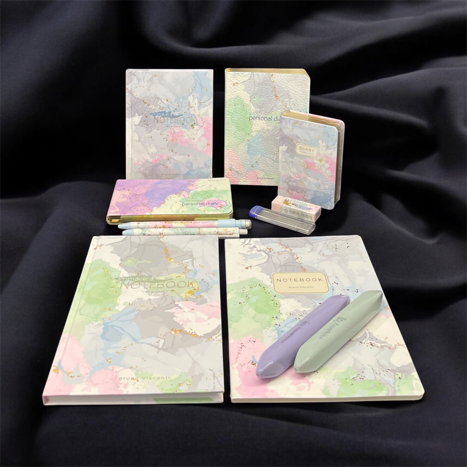 Внутри комплекта вы найдете всё для планирования и записей: блокноты разных форматов, ежедневники, тетрадь, ручку, карандаш, текстовыделители и даже запасные грифели. Это полный комплект для комфортной работы!